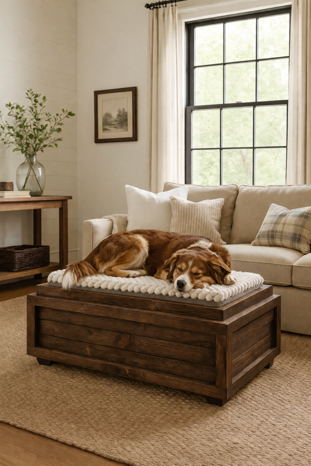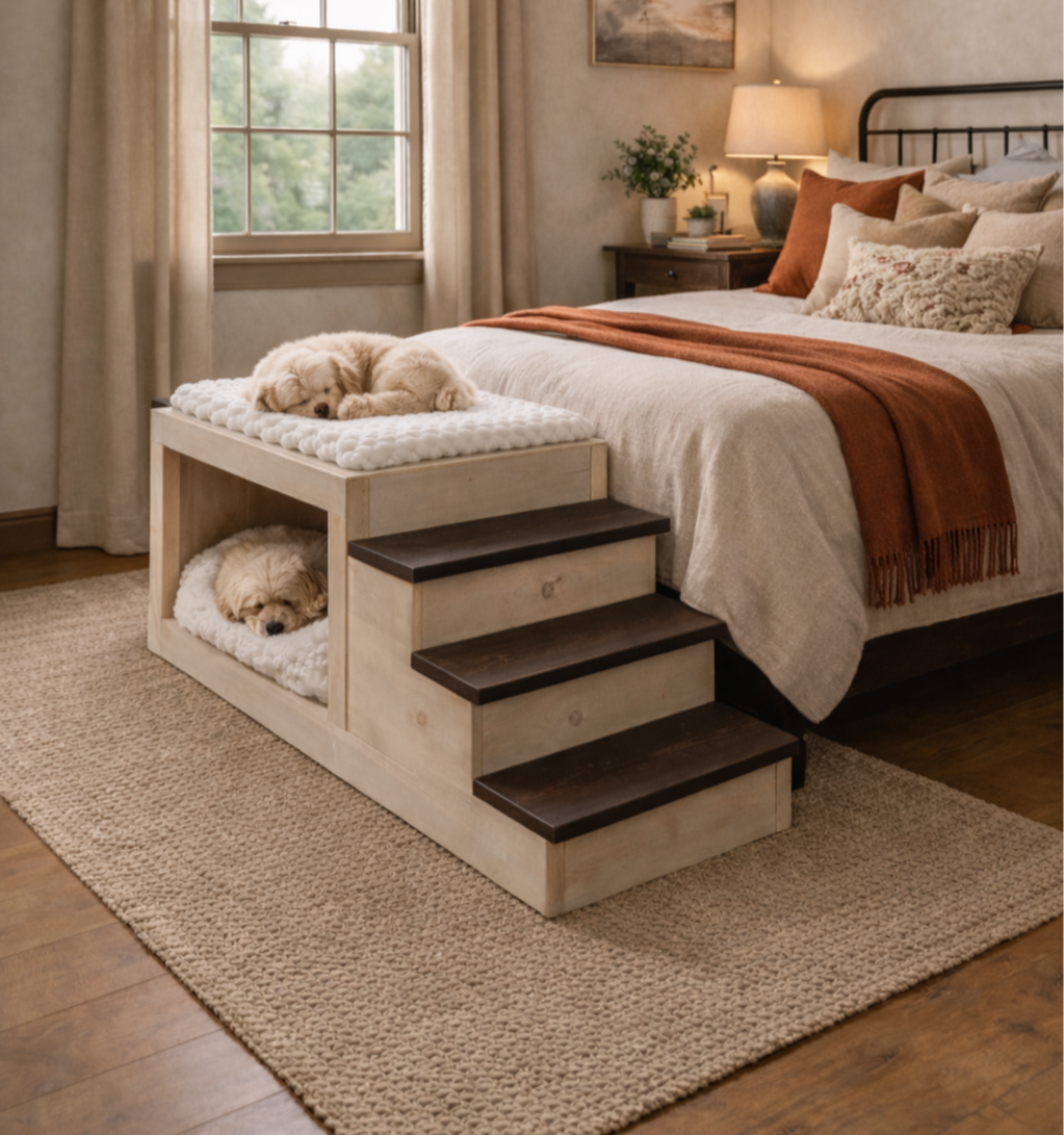 Handcrafted dog furniture made with solid wood, thoughtful design, and quality materials. Each piece is built to blend beautifully into your home while giving your dog a comfortable space of their own.